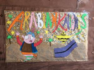 També hem realitzat una catifa màgica voladora amb la que hem pogut veure el desert, les piràmides i llocs molts especials. Aquesta setmana, ha fet molta calor com al desert i però hem trobat una mica d'aigua i ens hem pogut referescar una mica jugant als watergames i a la piscina.