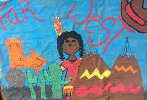 Aquesta setmana hem visitat el salvatge oest de la mà de "Wapi" i "Brad", un nen indio i el seu amic vaquer. Hem aprés a ballar música "country" i a construir tipis. Ens hem refrescat en el nostre pantà particular.